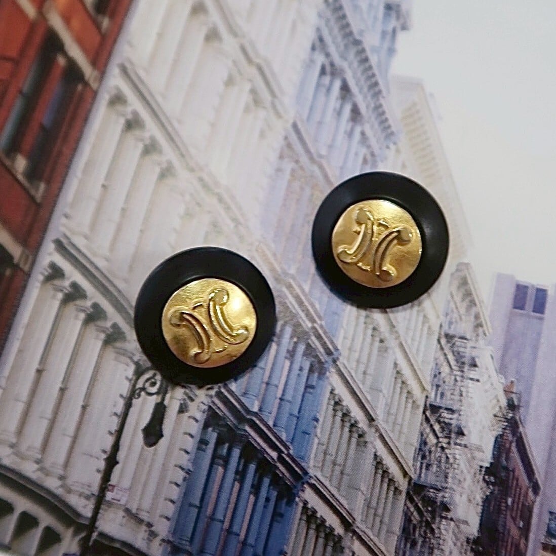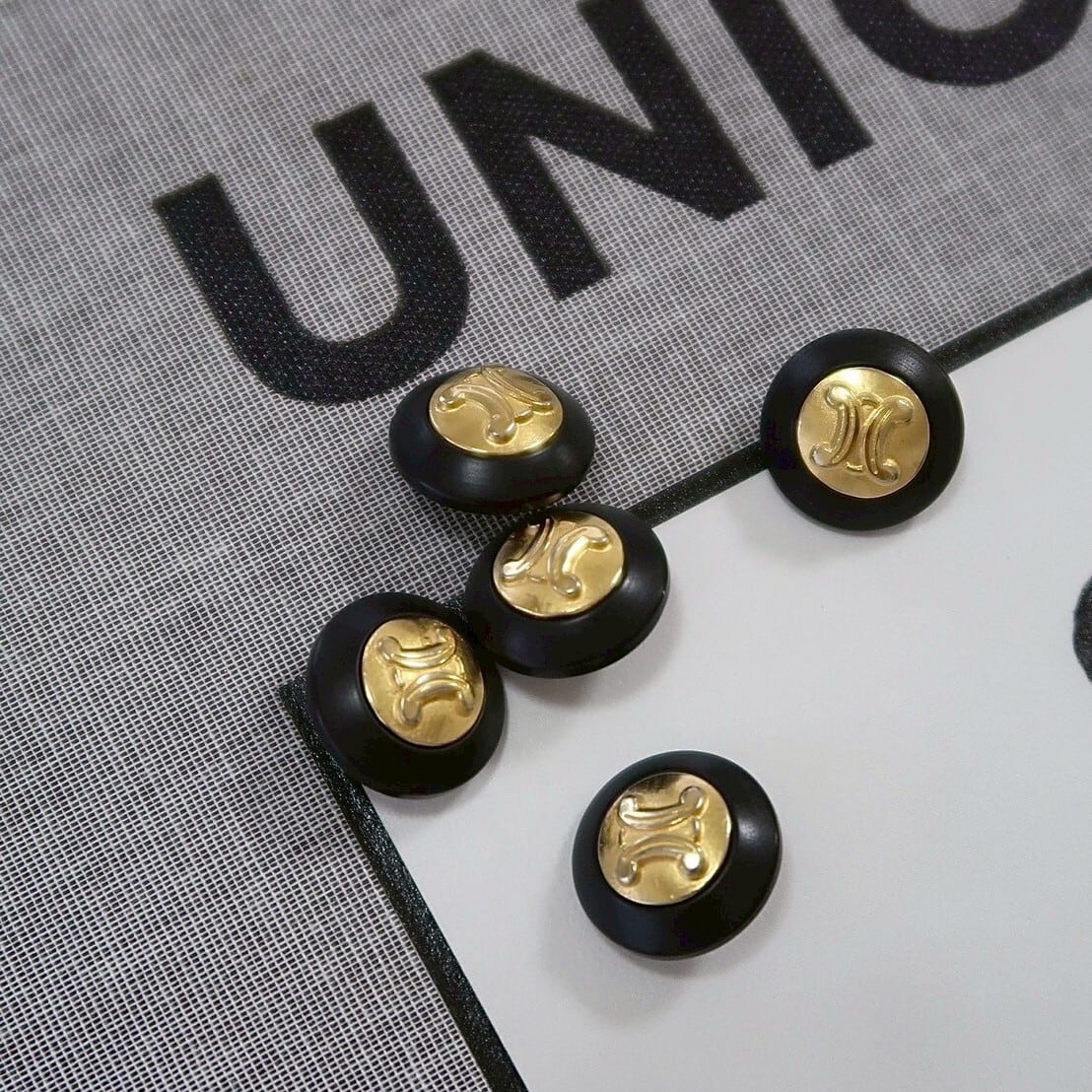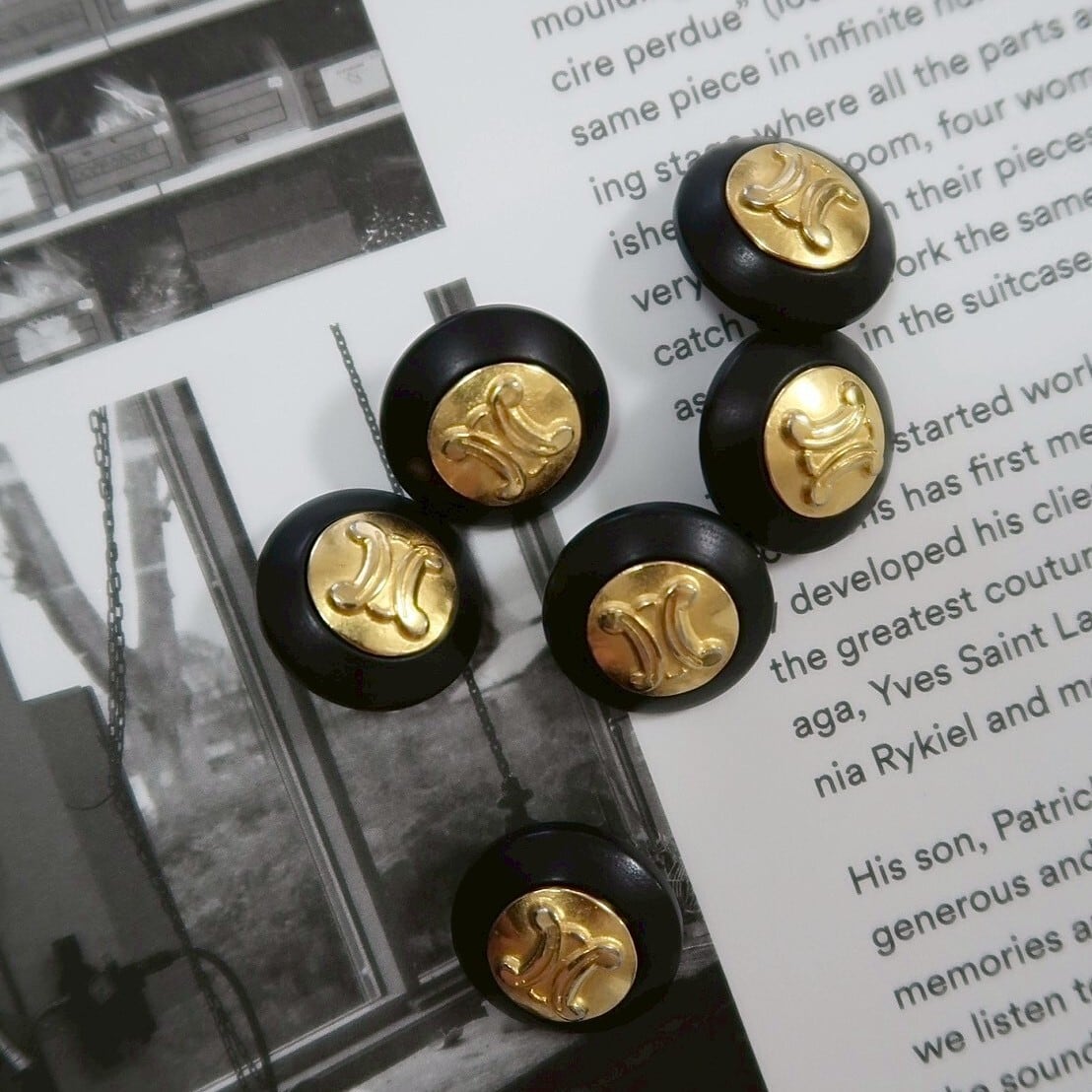 【VINTAGE CELINE BUTTON】アンティークゴールド ブラックボタン 17mm L-25004