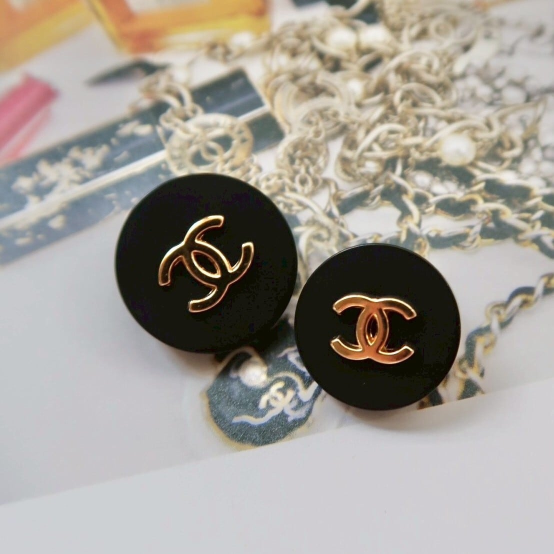 【VINTAGE CHANEL BUTTON】ゴールドココマーク ボタン ブラック 16mm C-25043