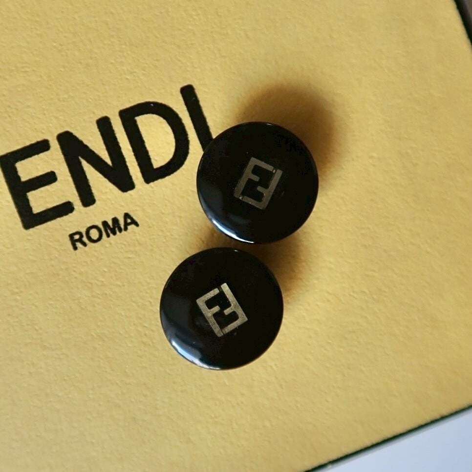 【VINTAGE FENDI BUTTON】ゴールドロゴ ブラック ボタン 18mm F-26001