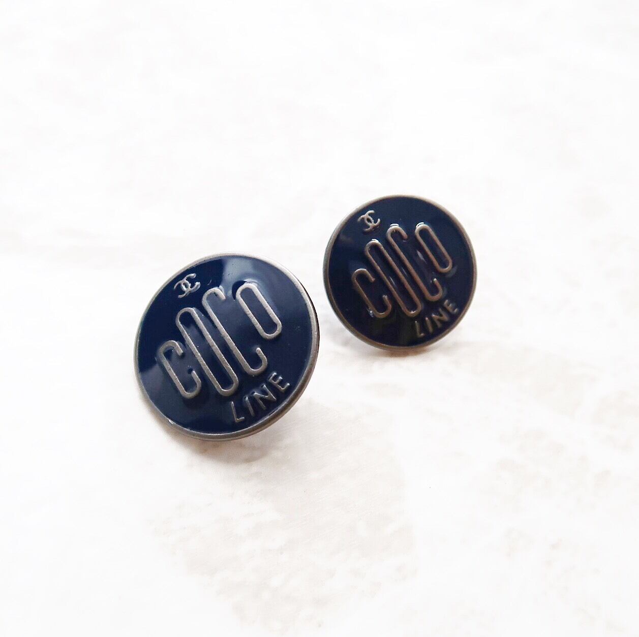 【VINTAGE CHANEL BUTTON】 ネイビー COCOロゴ ボタン 16㎝ C-21048