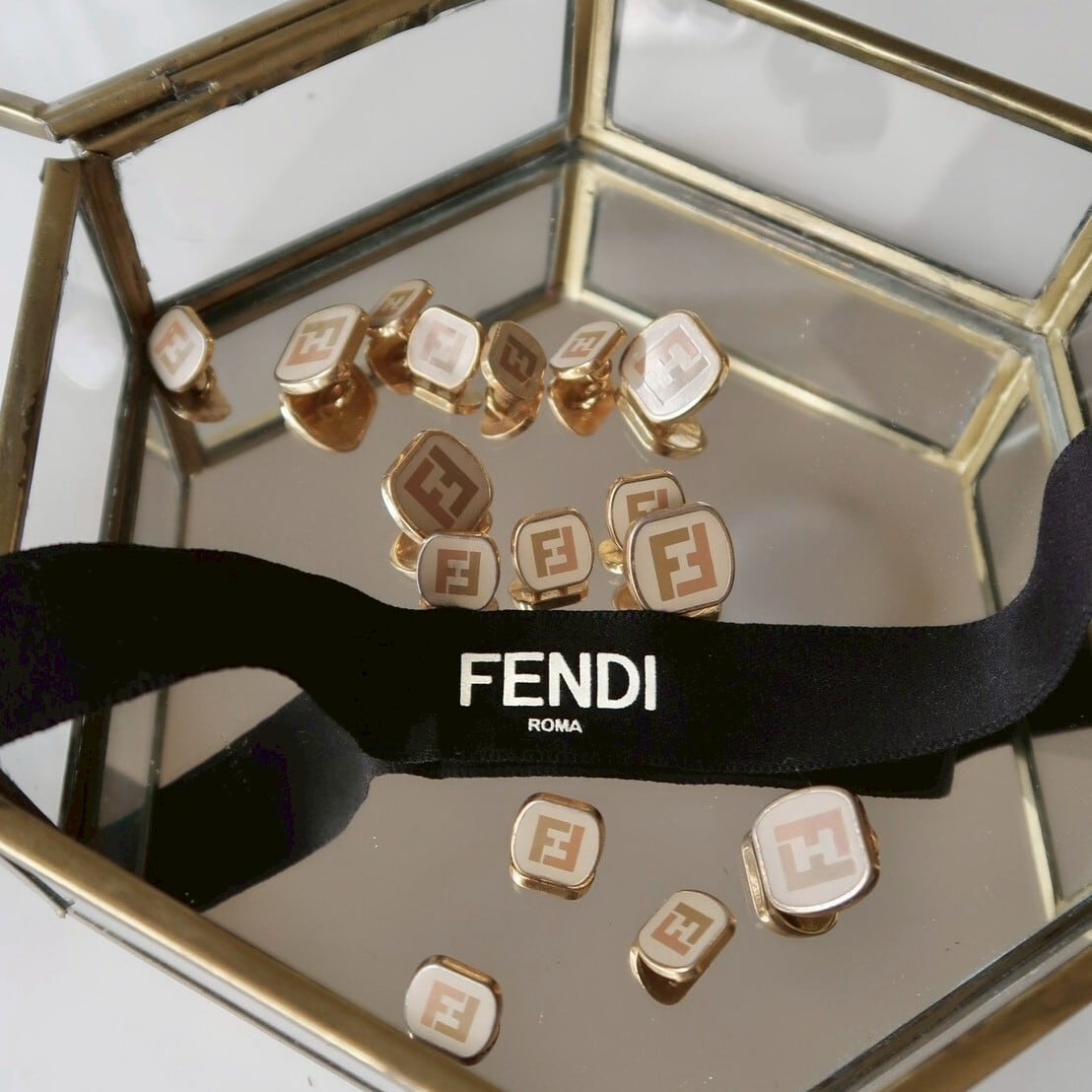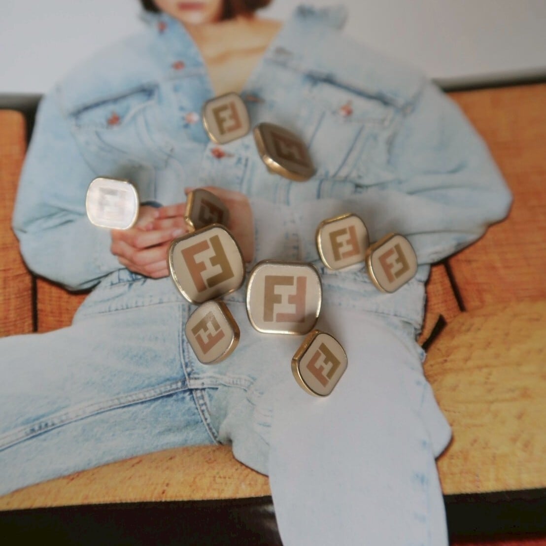 【VINTAGE FENDI BUTTON】スクエア ベージュ ボタン 14mm F-24005