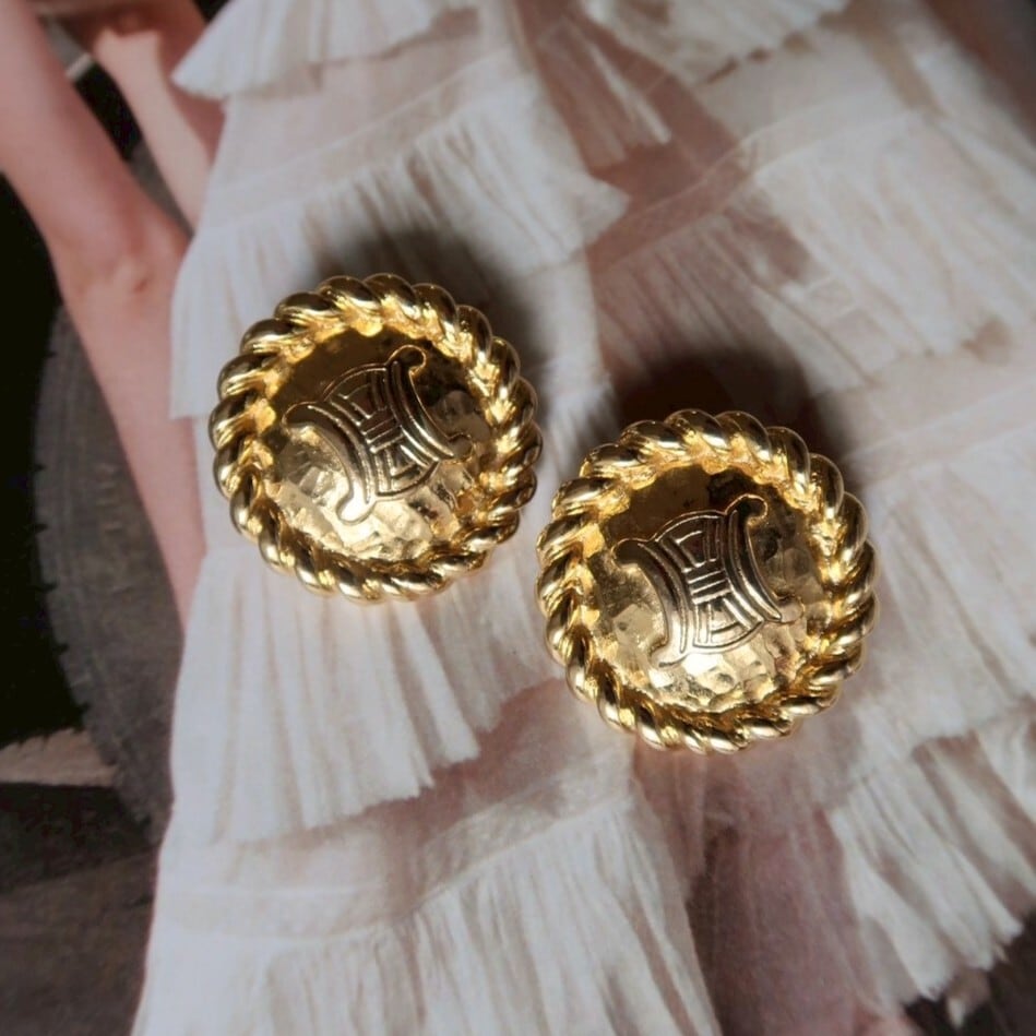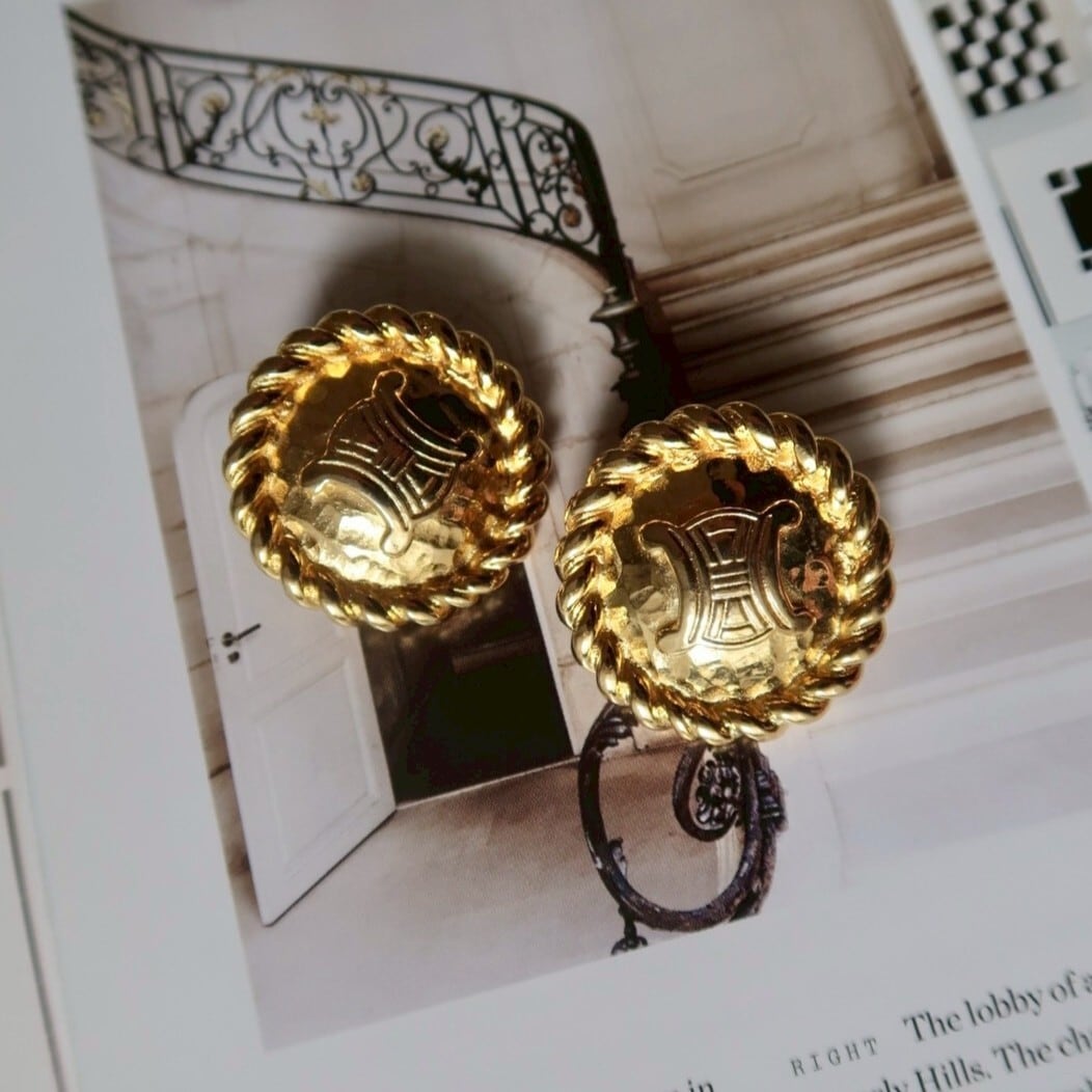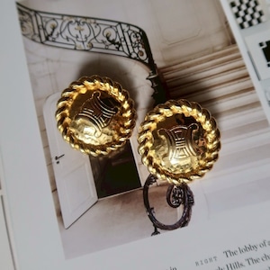 【VINTAGE CELINE BUTTON】ゴールドフレーム ロゴボタン 30mm L-26004