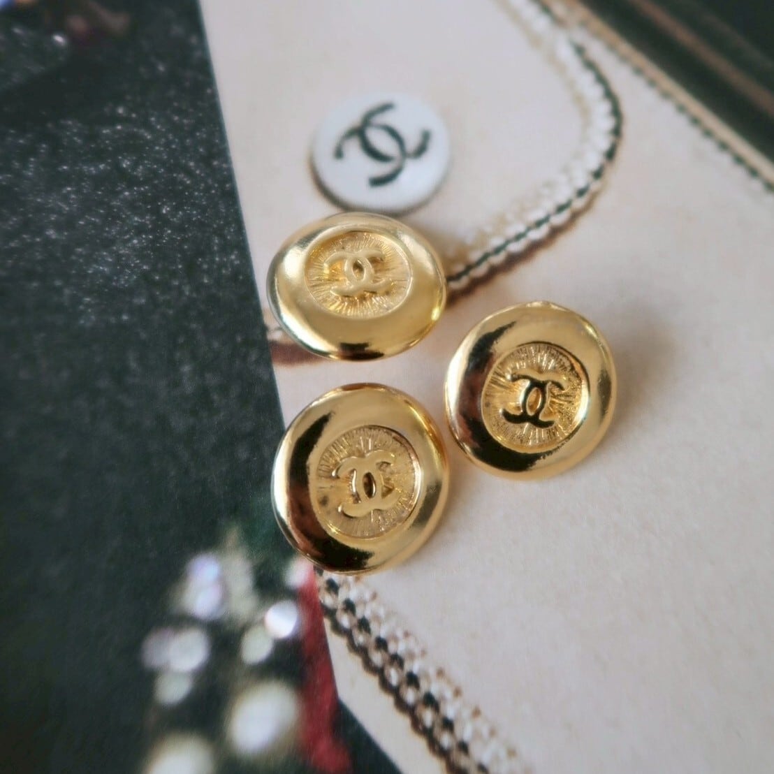 【VINTAGE CHANEL BUTTON】ゴールドフレーム バックインパクト ココマークボタン 18mm C-26003